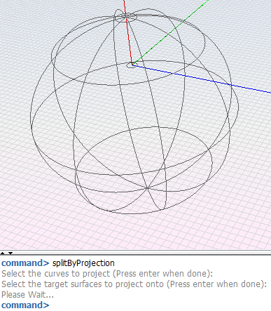 - splitByProjection -s <nameCurve1> <nameCurve2> ... –targets <nameSurface1> <nameSurface2> ... -dir <startX> <startY> <start> <endX> <endY> <endZ>