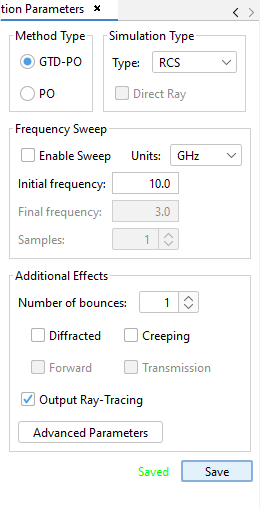 Figure 3. Simulation parameters panel.