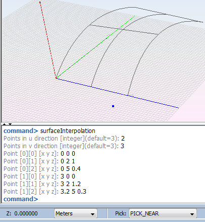 This option allows to create a surface that passes through the points specified by the user, using interpolation. The parameters of this function are the number of points in each direction of the surface and the points themselves.
