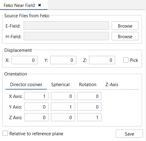 - The user can import the E-Field (.efe) and H-Field (.hfe) files from Feko by pressing the Browse button and selecting the files in their hard drive.