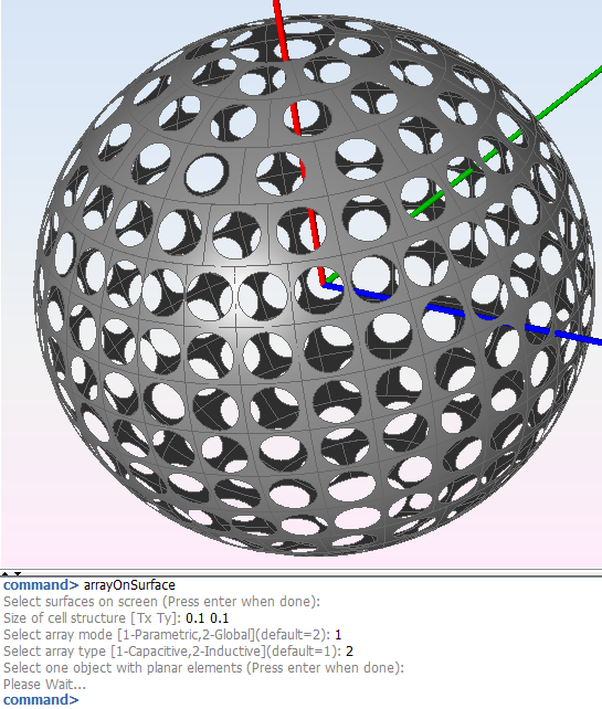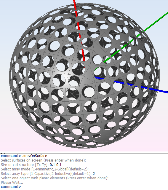Figure 3. Result of the arrayOnSurface command with global array mode and inductive array type