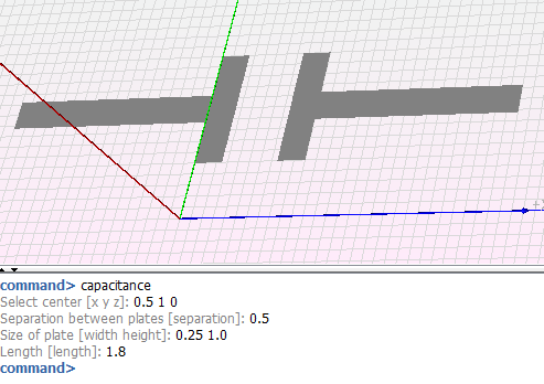 • capacitance -n name -p centerX centerY centerZ separation width height length: Create a new capacitance.