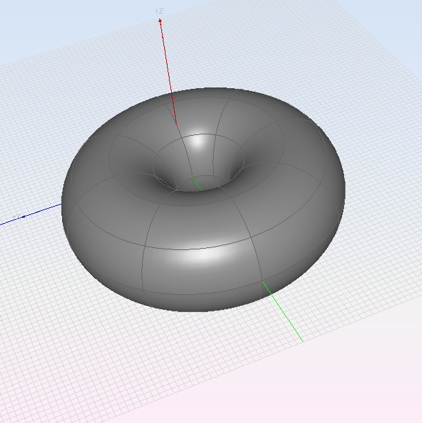 Adds a new torus to the geometry panel, receiving the central point, the minor (inner) radius and the major (outer) radius of the torus.