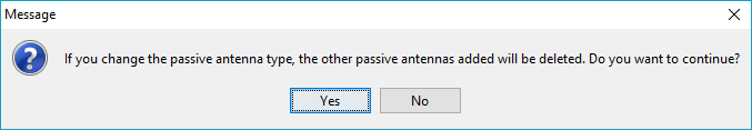Pressing "Yes" will confirm the addition of the new antenna and therefore, the deletion of the previous passive antennas. Otherwise, the previous antennas will not be deleted and the creation of the new antenna will be aborted.