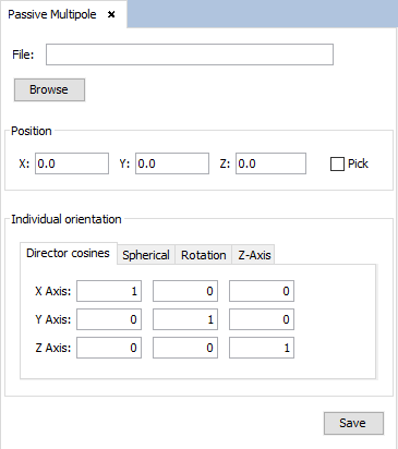 In this panel, the user needs to select the SUJ file that contains the multipole definition. Unlike the previous antenna types, it is not possible to create arrays of passive multipole antennas.