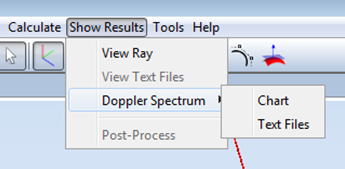 Using this menu it is possible to analyze the Doppler spectrum through the observation point previously defined in the Output section.