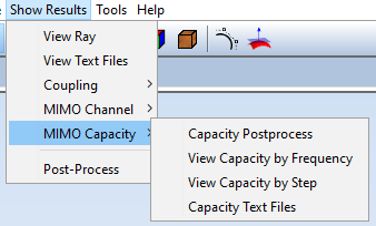 The menu "Show Results -> MIMO Capacity" provides several options to visualize the capacity of the MIMO system: