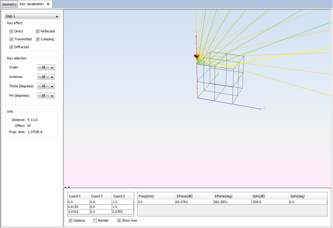 This option allows the user to view the rays emitted by the active antennas in the simulation.
