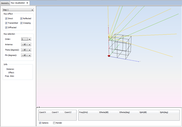 Step 9. It is possible to select a ray to show its information. Clicking in