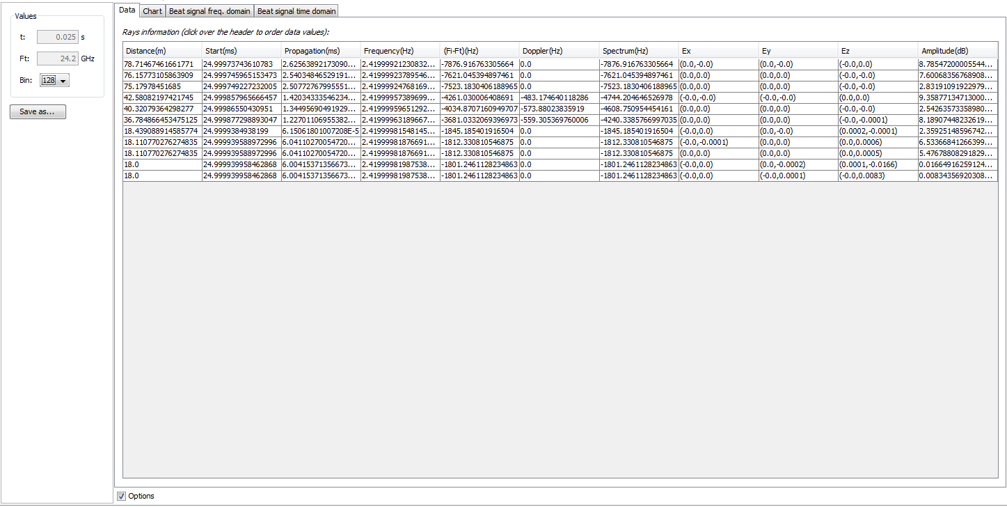 To save the data table values click on the ‘Save as...’ button and select the path for the file.