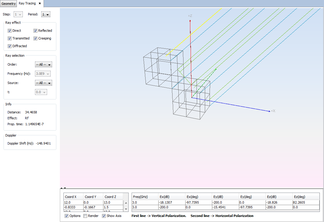 The ray tracing can be also visualized by doing click on Show Results -> Ray Tracing -> View Ray.