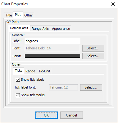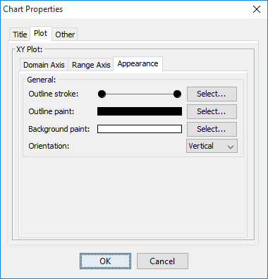 This tab allows the user to configure the parameters for the axis and the appearance, divided on three tabs:- Domain Axis. With this tab the user configures the parameters for the horizontal