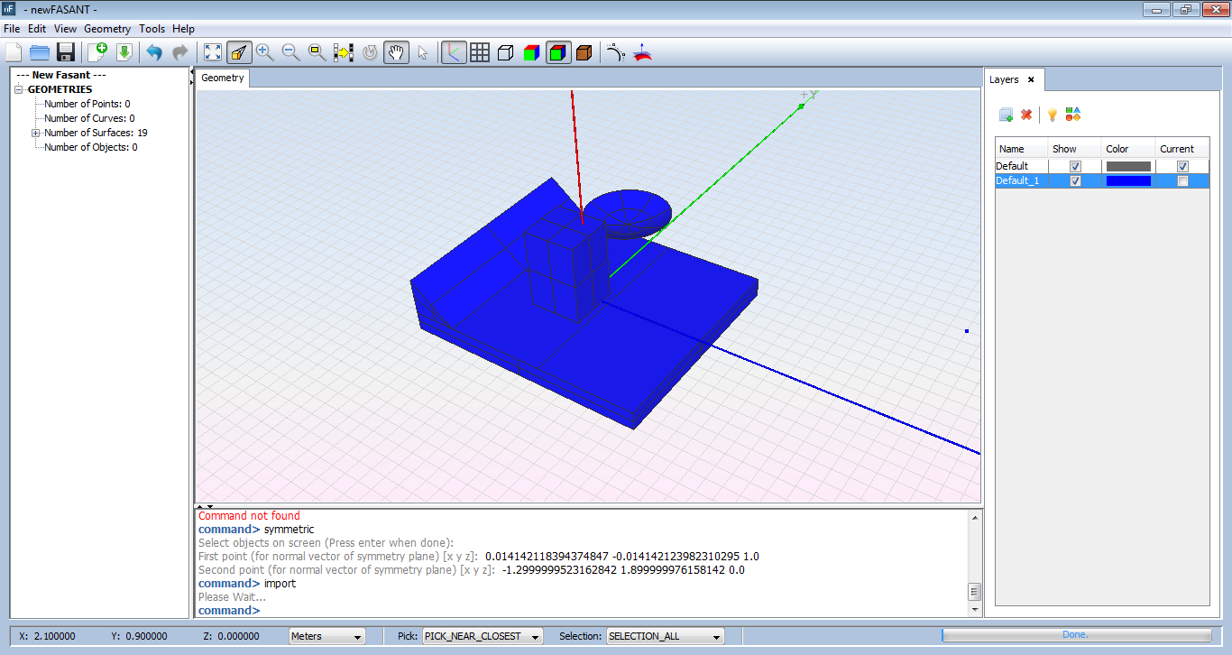 Clicking on layers around the object that is assigned to the default layer "Default". We can create new layers by clicking on New Layers. New layers appear with fields name, show, color and selected.