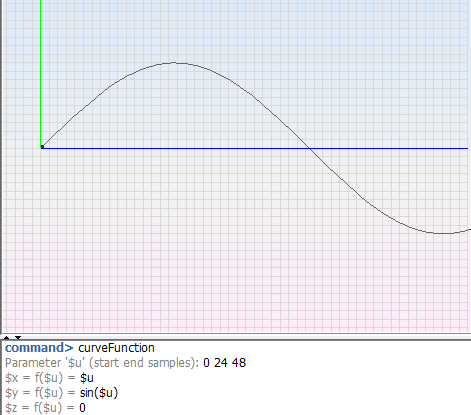 This option creates a curve by defining a parameter and three functions. To generate the curve it is necessary to define the '$u' parameter. With this parameter, the user defines three functions f($u), for the x, y, z coordinates. The resulting curve will pass through all the points.