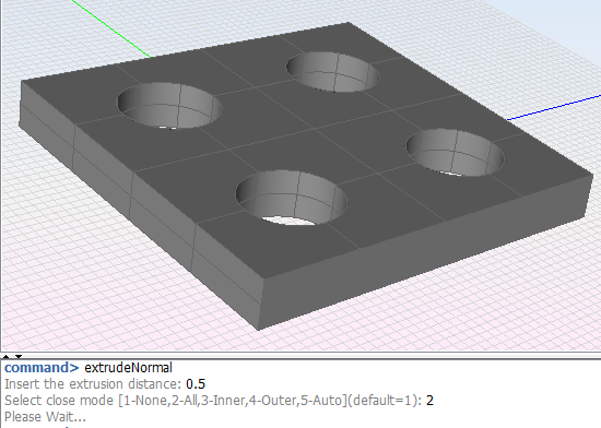 Figure 1. Generation of a closed object with the extrudeNormal command.