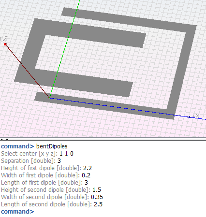 This option allows the user to create two bent dipoles in the geometry. The following parameters will be asked to the user when creating a pair of bent dipoles: