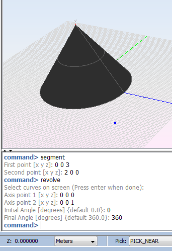 This function creates a surface by rotating a curve around a rotational axis. This function receives the following parameters the curve to rotate, two axis points and the initial and final angles of rotation. The line that contains the two axis points will be considered the rotation axis.