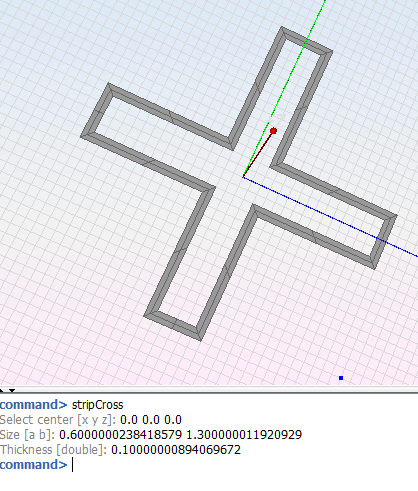 The stripCross primitive can be used to generate a cross primitive that has a defined outer thickness and an inner hole.