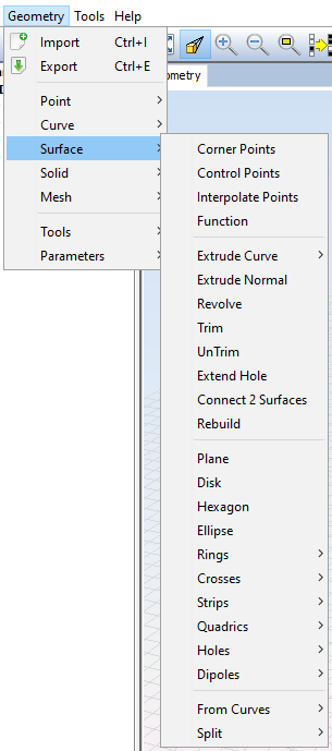 • Geometry Menu