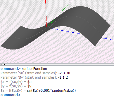 - surfaceFunction The randomValue() has been used to create a sinusoid (with random noise) surface.