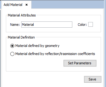 Material Attributes - Name. The user specifies the desired name for the new material.