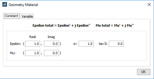 Figure 2. Material defined by geometry, tab ‘Constant’