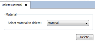 This option allows the user to remove a previously defined Material. When the Materials –Delete option is selected, the Delete Material window (following Figure) appears. When the material to be deleted has been selected in the Select material combo box, the action can be confirmed by clicking on Delete.