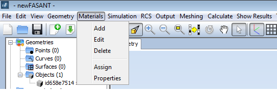 In this section, all the features available in the PO (Physical Optic) module Materials menu are explained. The available options in the Materials menu are shown in the next Figure.