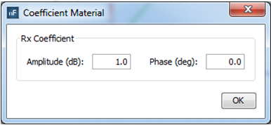 Material Definition - Material defined by reflection coefficient: Used to define a material according to its reflection coefficient. After clicking on the Set Parameters button, a window appears to define the reflection coefficient: