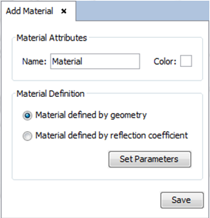 Material Definition - Material defined by geometry: Used to define a material according to its physical properties. After clicking on the Set Parameters button, two different options are available in the Material defined by Geometry window: