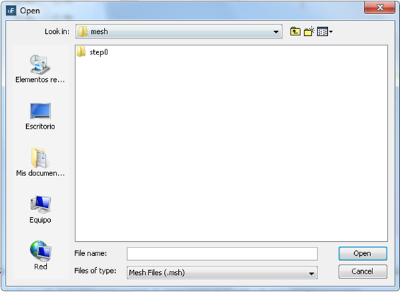 This option can be chosen by the user to load a mesh file (.msh or .mcs file extension). When this option is selected the following window appears: