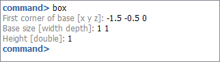 Execute 'box' command writing it on command line and sets the parameters as the next figure shows when command line ask for it.
