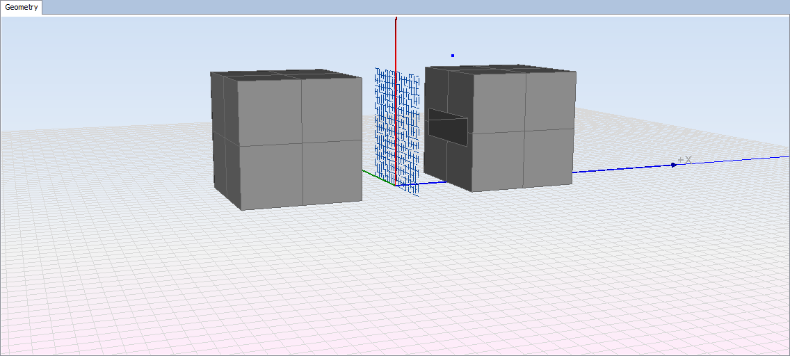 The final result is a geometry with two boxes with a slot on the front surface to the observation plane.