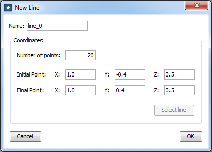 To show the same results over the line observation, follow the steps explained for the plane observation but previously to click on 'OK' button to show the results, click on 'Parameters' button on 'Trace Representation' panel. Then select the line observation on the panel that appears and confirm the changes.