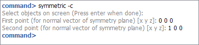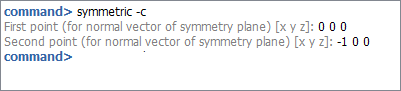Execute 'symmetric -c' command with the surface used on previous step. Use 'symmetric' parameters as the following figure shows.