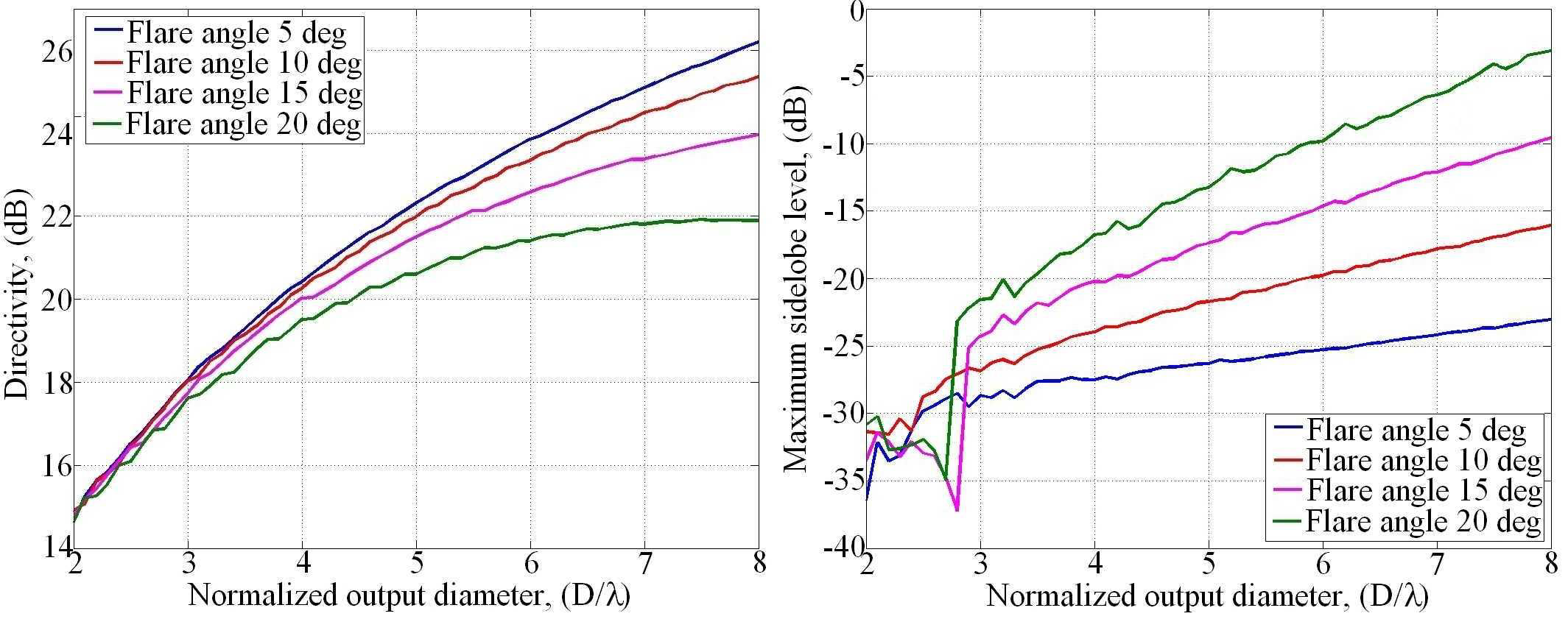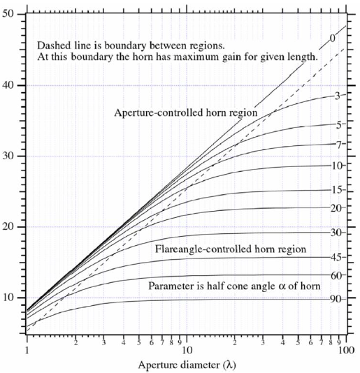 To choose the flare angle and the aperture diameter, observe the next graph.