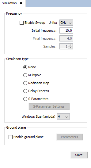 In this case, we will simulate at 10 GHz, so the maximum and minimum frequency are 10 GHz.