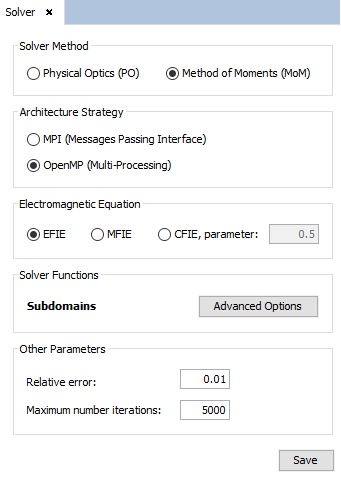 Step 6: Set the solver parameters. Click on Solver --> Parameters option on the menu bar. Verify that all the parameters are defined by default, as shown in next figure. Click on Save button before going to next step.