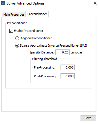 Select ‘Advanced Options’ and activate Preconditioner as shown.