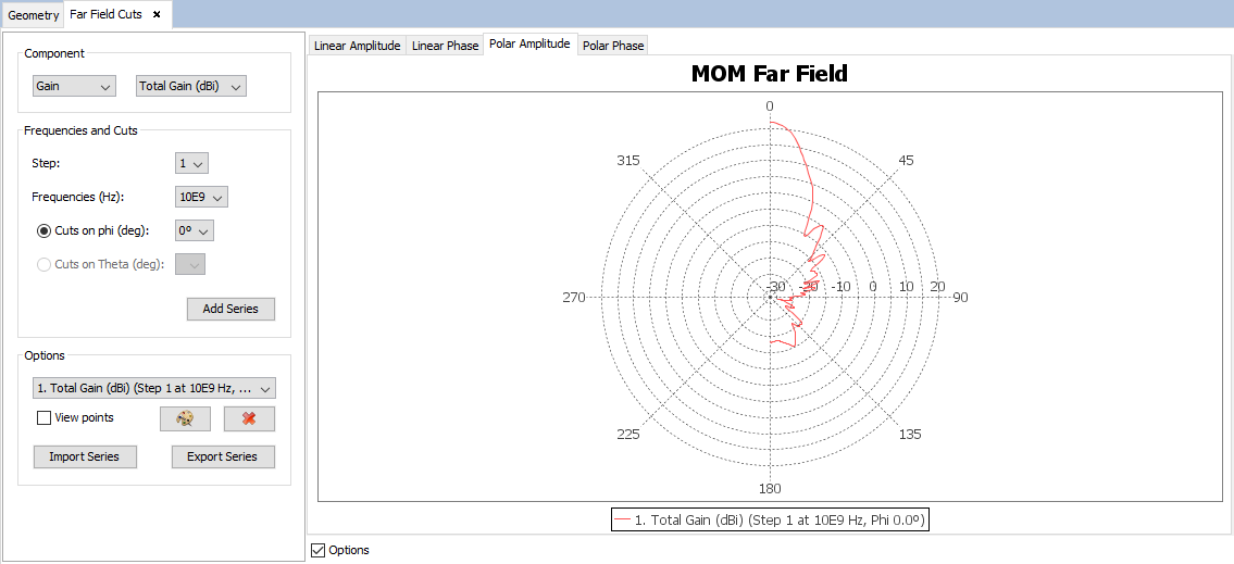 Selecting other values for the component, step, frequency or cut parameters and clicking on 'Add Series' button a new cut will be added to the selected parameters.