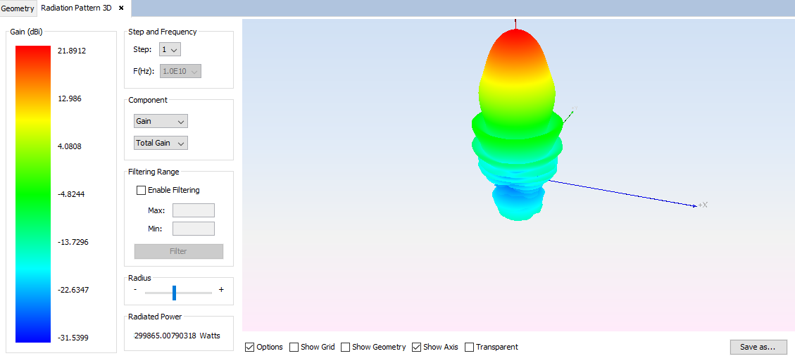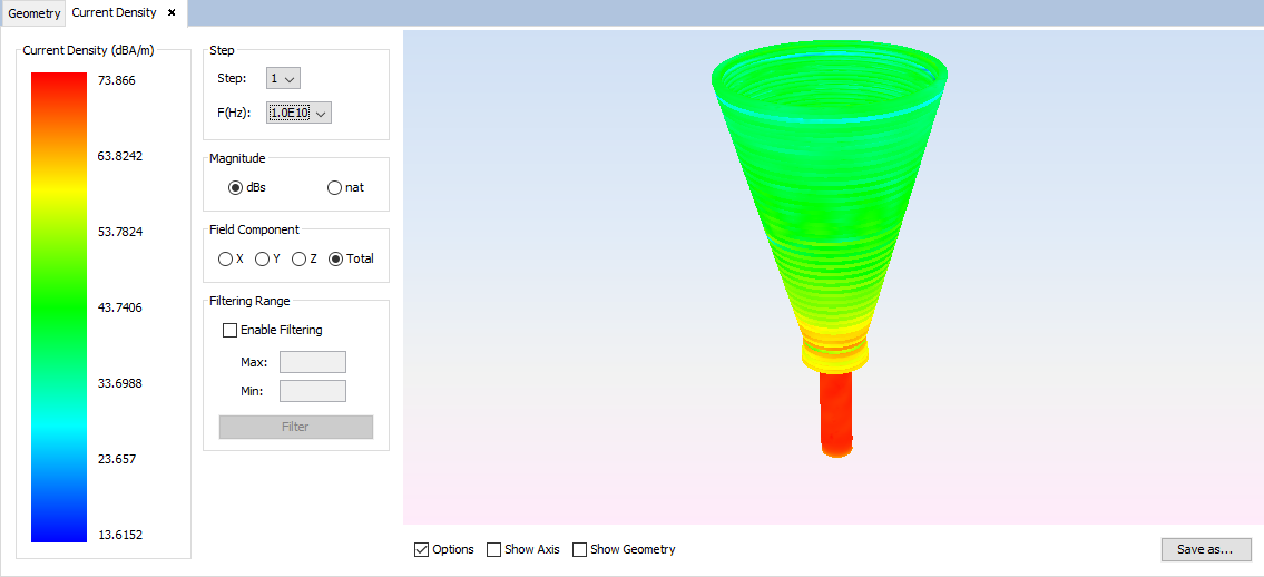 This case explains how to calculate far-field, radiation pattern, current density, charge density and near field of a corrugated horn with 22 dB gain at 10 GHz.
