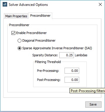Select ‘ Advanced Options’ and activate Preconditioner as shown.