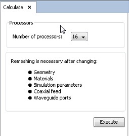 Select ' Calculate --> Execute' option to open simulation parameters. Then select the number of processors as the next figure show. In order to obtain the shortest possible time for calculating the results, it is recommended to run the process with the number of physical processors available to the machine.