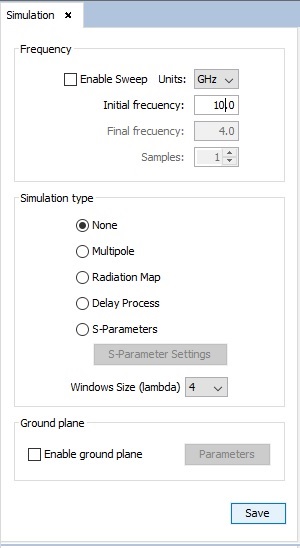 Select ' Simulation --> Parameters' option on the menu bar and the following panel appears. Set the parameters as the next figure shows and save it.