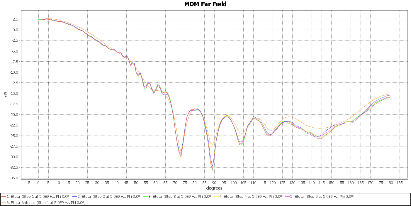 Figure 11. Cut Phi = 0 comparison - radome steps and isolated antenna