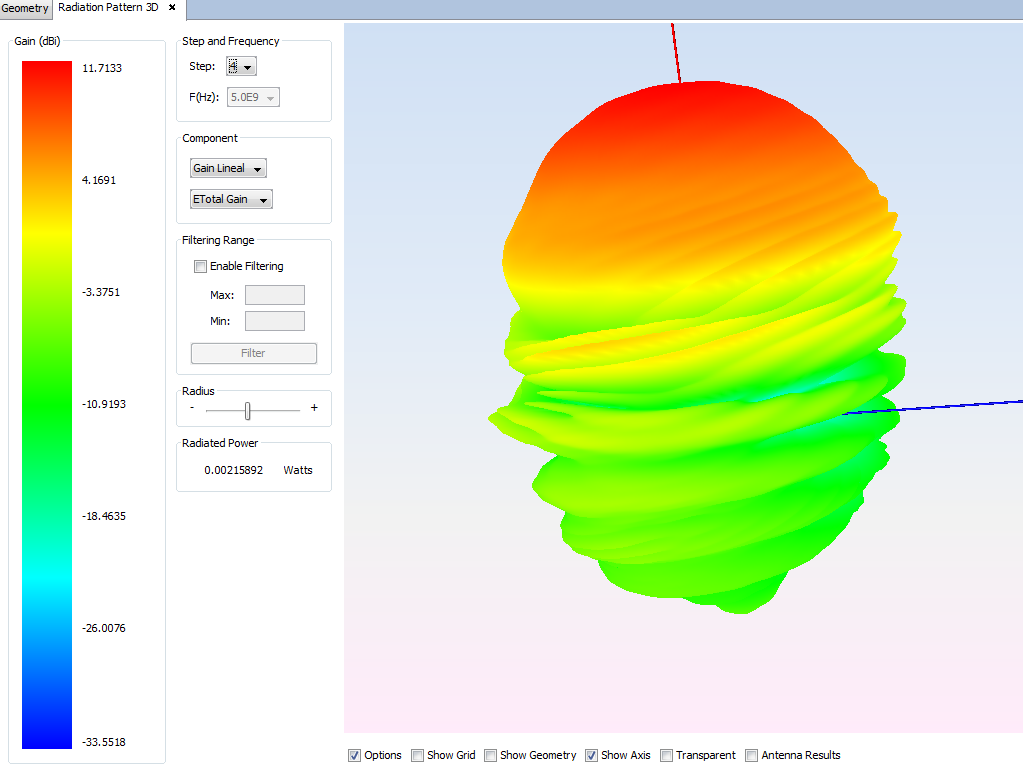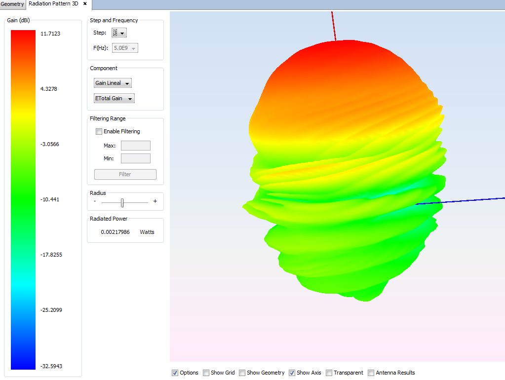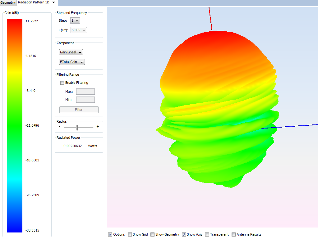 Figure 1. 3D radiation pattern - Step 1: 5.0e9 Hz