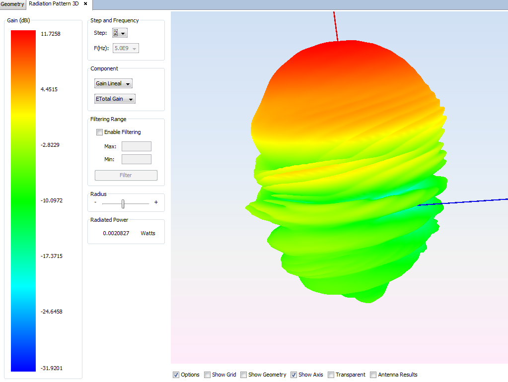 Figure 2. 3D radiation pattern - Step 2: 5.0e9 Hz