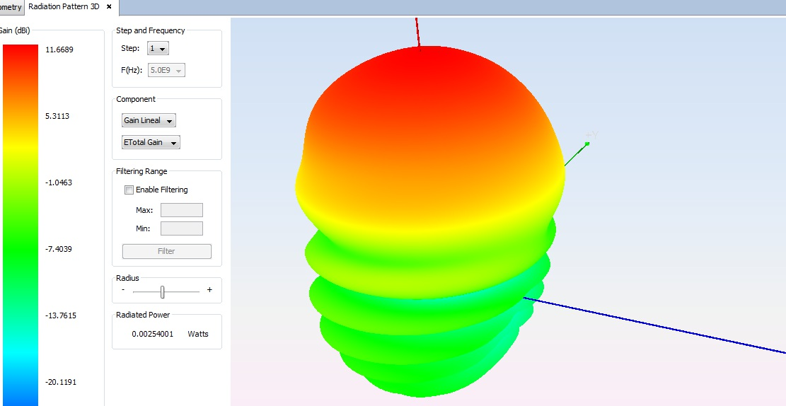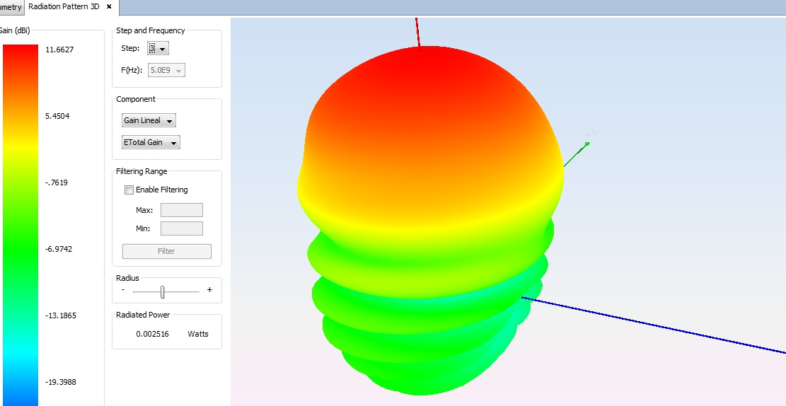Figure 3. 3D radiation pattern - Step 3: 5.0e9 Hz