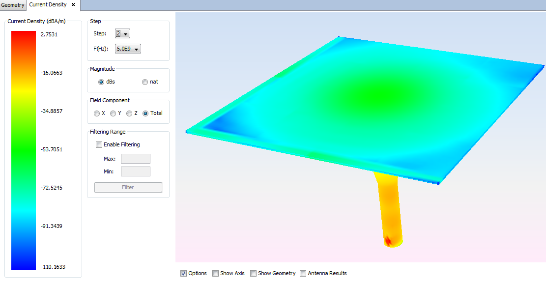 Figure 7. Current density - Step 2: 5.0e9 Hz