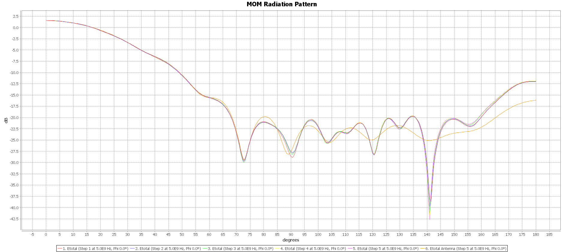 Figure 11. Cut Phi = 0 comparison - radome steps and isolated antenna